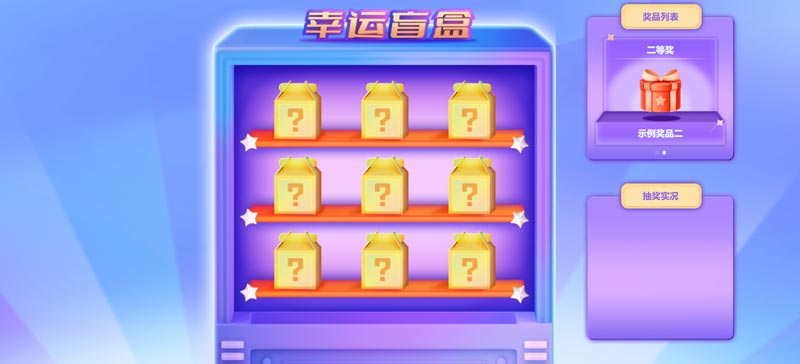 開盲盒游戲,也叫拆盲盒或幸運盲盒。開盲盒以其神秘感、趣味性備受游戲玩家喜愛,活動策劃師可以采用盲盒實物工具、盲盒電子機器或線上盲盒小程序來實現(xiàn)。這里推薦的是開盲盒游戲小程序。在會議入場、暖場流程中,把開盲盒小游戲介紹的背景板放置在現(xiàn)場,或者以海報的形式展現(xiàn)在會場大屏中,同時輔助以現(xiàn)場音效和燈光。參會者掃碼進入游戲小程序后,自選盲盒開獎,中獎后憑借中獎碼到兌獎臺領(lǐng)取獎品(可以是實物獎品、現(xiàn)金紅包、電子會員卡、電子消費券等),同時可以生成分享海報,促使用戶分享中獎海報,實現(xiàn)營銷裂變,達到宣傳會議活動的目的。